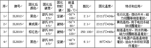 世林的微動(dòng)開(kāi)關(guān)用灌封膠,有這么幾種產(chǎn)品,主要是在耐溫等級(jí)有區(qū)別,當(dāng)然灌封膠的顏色,配比這些都可以做一些參考,包括施膠后的固化工藝要求。具體見(jiàn)下表: