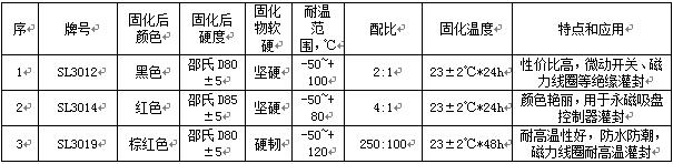 世林紅色灌封膠,牌號是SL3014膠,還有一款,顏色稍微偏深的紅色灌封膠SL3019,具體見下表: