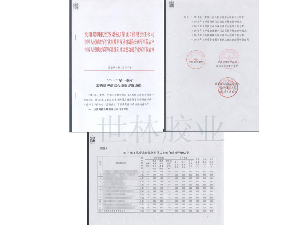 世林膠業(yè)獲得某發(fā)動(dòng)機(jī)集團(tuán)公司供應(yīng)商綜合績(jī)效好評(píng):