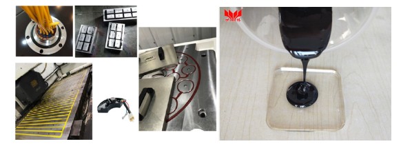 適合大體積電子、電器產(chǎn)品的絕緣灌封,由于這款膠水在室溫下固化十分緩慢,因此對(duì)于深度較深的電子元器件很合適,如果您擔(dān)心灌封時(shí)有氣泡產(chǎn)生,可以采用先將A組份膠水加熱80℃兩小時(shí)后再進(jìn)行調(diào)配使用。