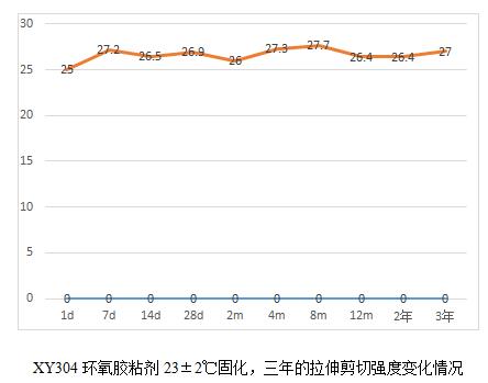 當然通過這6個表,我們也能看出規(guī)律就是,膠粘劑產(chǎn)品高溫固化相對較為完全,后續(xù)老化數(shù)據(jù)影響不大,而常溫固化數(shù)據(jù)明顯低于高溫固化,比如XY304,常溫固化數(shù)據(jù)未25兆帕,高溫固化為28.3兆帕,而XY301室溫固化數(shù)據(jù)22.5兆帕,高溫固化為28.2,相比高出25%。
