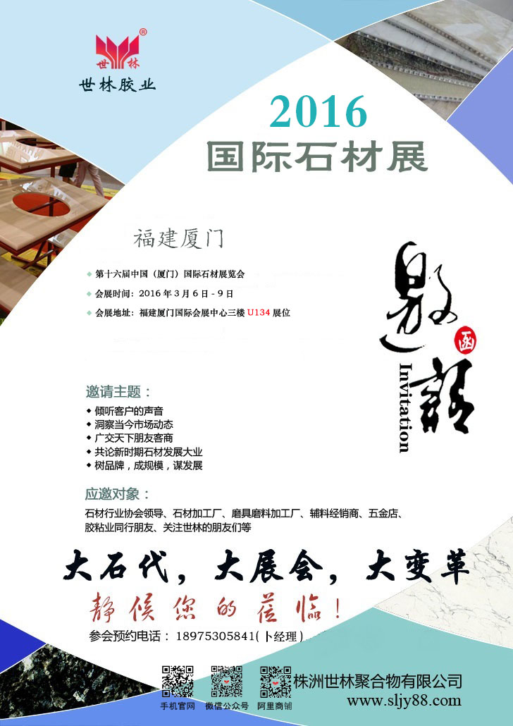 您現(xiàn)在的位置:世林膠業(yè)首頁 - 資訊大全 - 世林膠業(yè)誠邀您參加2016年國際石材展