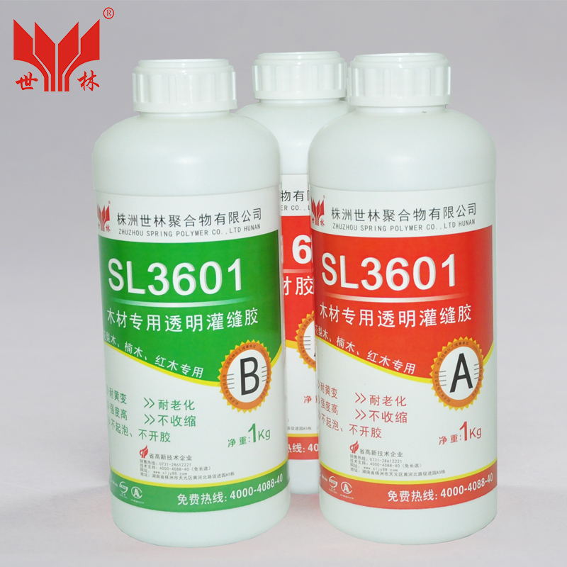 因?yàn)樵瓉碛玫哪z不能夠滿足較高的要求,現(xiàn)在在福建水頭、仙游等地的木材加工集聚地,選用的是株洲世林膠業(yè)生產(chǎn)的SL3601/SL3602透明木材灌封膠,這兩款膠不管是從韌性、耐久性方面,都遠(yuǎn)遠(yuǎn)優(yōu)于原用的聚氨酯類型的膠水。而且這兩款膠還具有硬度高,耐磨,收縮率小,滲透性好,填縫能力強(qiáng),與木頭的附著力較好等優(yōu)點(diǎn),完全解決了大板木材修復(fù)上面的問題。