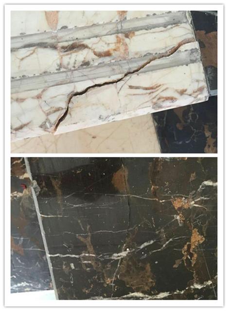 根據(jù)網(wǎng)上提供的號(hào)碼18169335841,聯(lián)系到銷售工程師謝工,告知斷裂面大需要先無水清理干凈斷面,再調(diào)和石粉補(bǔ)強(qiáng)固定住后再灌膠到裂縫內(nèi),等固化后再打磨,裂縫小則直接用膠灌注表面等膠慢慢滲入。于是訂購一組按說明操作,哎!還別說,效果還真的好。不僅大理石斷裂處全部修補(bǔ)好了,連之前一些小的裂縫也都填補(bǔ)齊了,打磨后還非常牢固。 SL3218透明裂縫修補(bǔ)膠除了用在大理石裂縫修補(bǔ)外還可以用于其他玻璃、木材、陶瓷等的裂縫及斷裂面修補(bǔ)